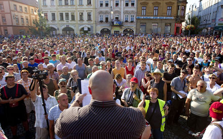 Bez vánìjích konfliktù èi incidentù se v pátek 26. srpna 2011 obelo zakázané shromádìní ve Varnsdorfu i pozdìjí akce v Rumburku (na snímku) proti narùstající kriminalitì. MIKULÁ KØEPELKA / MEDIAFAX