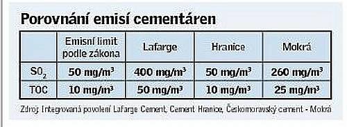 porovnání emisí cementáren